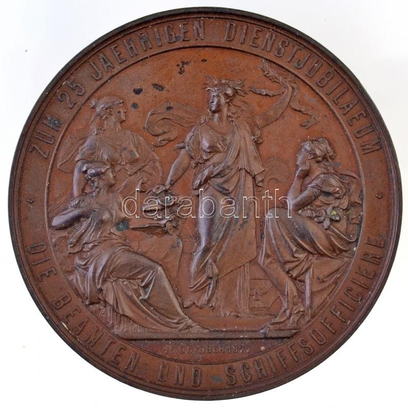 Anton Scharff (1845-1930) 1877. "Martin Ritter von Cassian a DDSG igazgatója / 25 éves szolgálati évforduló - Az alkalmazottak és tisztek" német nyelvű Br emlékérem (64mm) T:2 kis ph.