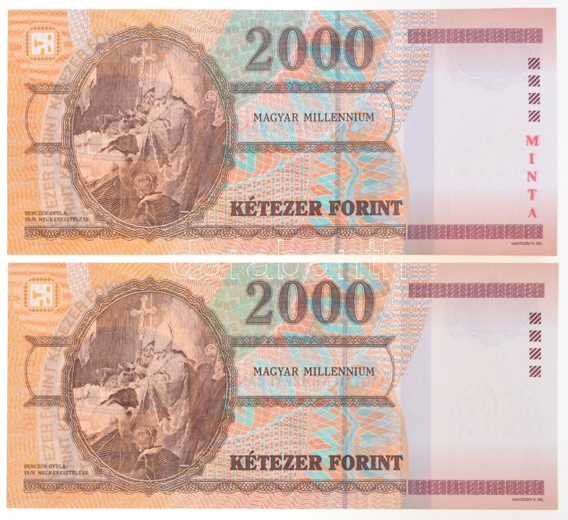 Leírás: 2000. 2000Ft "MINTA" "Millenium" "MM 0500284" + 2000Ft "Millenium" "MM 0191080" T:I / Hungary 2000. 2000 Forint "MINTA(SPECIMEN)" "Millenium" "MM 0500284" + 2000 Forint "Millenium" "MM 0191080" C:UNC