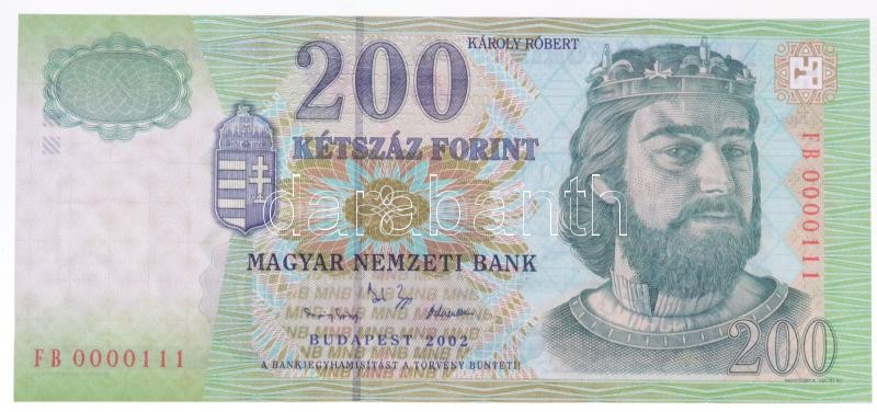 2002. 200Ft "FB 0000111" alacsony sorszám T:I / Hungary 2002. 200 Fori... https://www.darabanth.com/hu/27-Nagyaukcio/27.1/Numizmatika/Magyar-es-kulfoldi-bankjegyek~10747/2002-200Ft-FB-0000111-alacsony-sorszam-TI-Hungary-2002-200-Forint-FB-0000111-low-serial-nu~II1571047