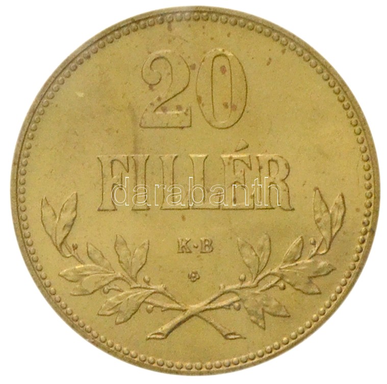 Leírás: 1922. 20f aranyozott Br, rozettával, Artex-veret T:1(P) / Hungary 1922. 20 Fillér gilt Br, with rosetta, Artex-strike C:UNC(P)