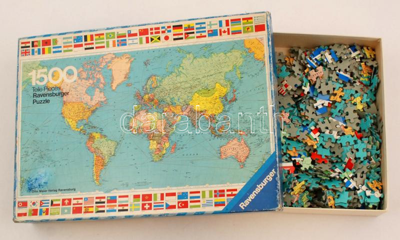 1971 Világtérkép, 1500 db-os puzzle, hiánytalan, eredeti dobozában https://www.darabanth.com/hu/270-Gyorsarveres/270.0/Festmeny-mutargy-papirregiseg-egyeb/Bolhapiac~20/1971-Vilagterkep-1500-db-os-puzzle-hianytalan-eredeti-dobozaban~II1361291