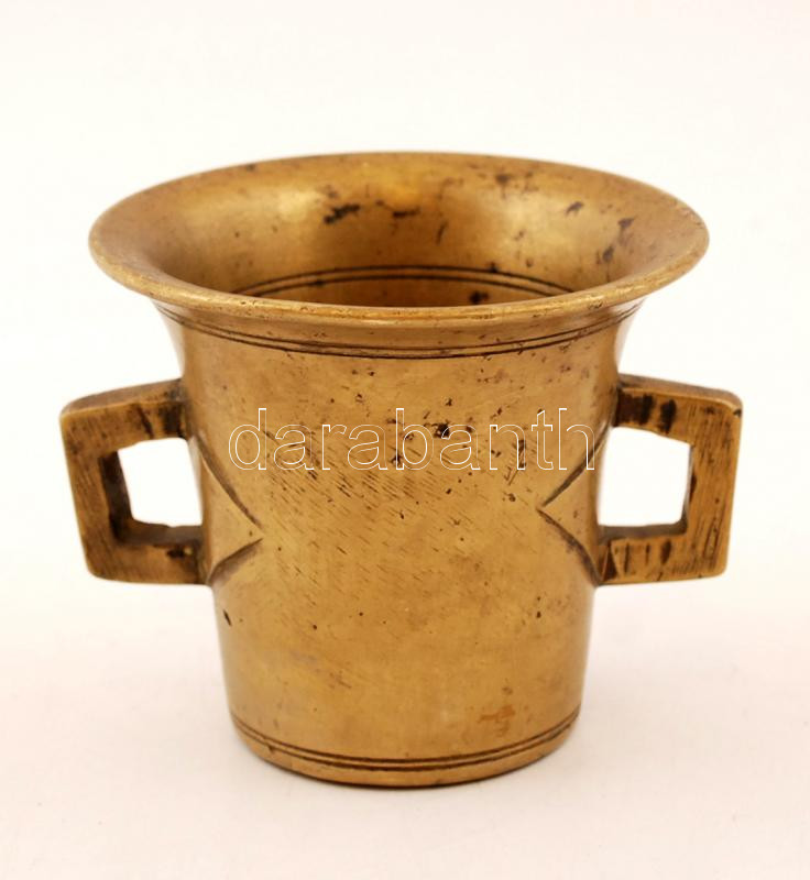 Leírás: Antik bronz mozsár, törő nélkül, m:10 cm