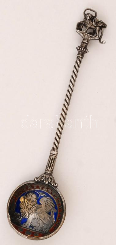 Leírás: "Ducatus Venetus" ezüstözött, zománcozott fém kanál, h: 14 cm