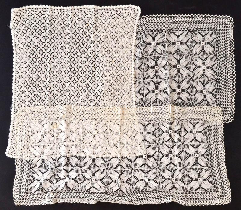 Horgolt terítők, 3db, különböző méretben, 60x28cm, 40x30cm és 43x35cm https://www.darabanth.com/hu/270-Gyorsarveres/270.0/Festmeny-mutargy-papirregiseg-egyeb/Bolhapiac~20/Horgolt-teritok-3db--kulonbozo-meretben-60x28cm-40x30cm-es-43x35cm~II1360576
