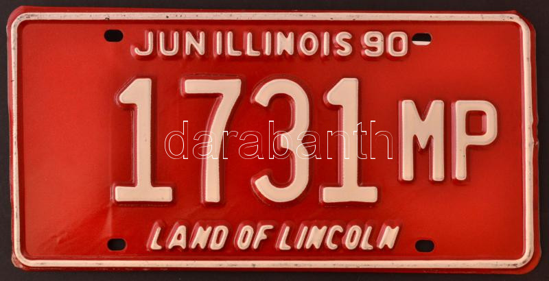 "Jun Illionois 90 1731 MP Land of Lincoln" feliratú amerikai... https://www.darabanth.com/hu/270-Gyorsarveres/270.0/Festmeny-mutargy-papirregiseg-egyeb/Bolhapiac~20/Jun-Illionois-90-1731-MP-Land-of-Lincoln-feliratu-amerikai-rendszamtabla-30x15-cm~II1364330