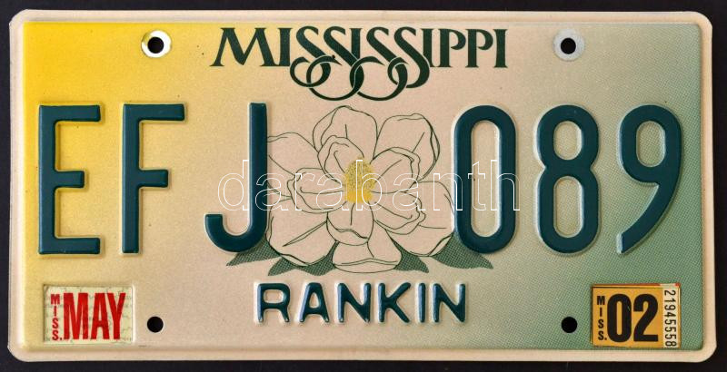 "Mississippi EFJ 089 Rankin" feliratú amerikai rendszámtábla... https://www.darabanth.com/hu/270-Gyorsarveres/270.0/Festmeny-mutargy-papirregiseg-egyeb/Bolhapiac~20/Mississippi-EFJ-089-Rankin-feliratu-amerikai-rendszamtabla-30x15-cm~II1364349