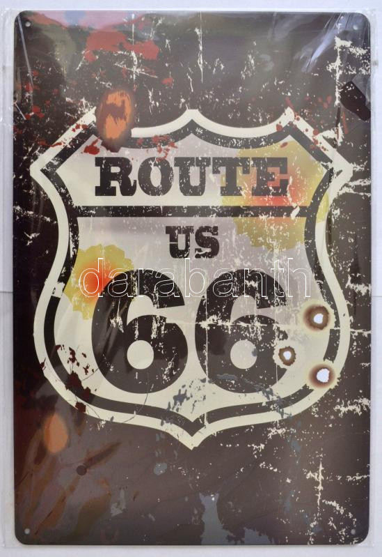 Leírás: "Route US 66" feliratú vintage fém tábla. 20x30 cm. Eredeti, bontatlan csomagolásban. Utángyártott.