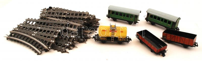 Leírás: VEB fém vasútmodellek 5 db festett fém vasúti kocsi, jó állapotban, hozzá sok sín