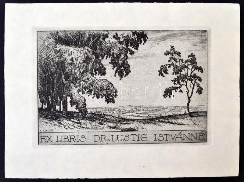 Adolf Kunst (1882-1937): Ex libris Dr. Lustig Istvánné. Rézkarc, papír... https://www.darabanth.com/hu/270-Gyorsarveres/270.0/Festmeny-mutargy-papirregiseg-egyeb/Ex-libris-es-kisgrafika~7/Adolf-Kunst-1882-1937-Ex-libris-Dr-Lustig-Istvanne-Rezkarc-papir-jelzett-a-karcon-9C39713-~II1359565