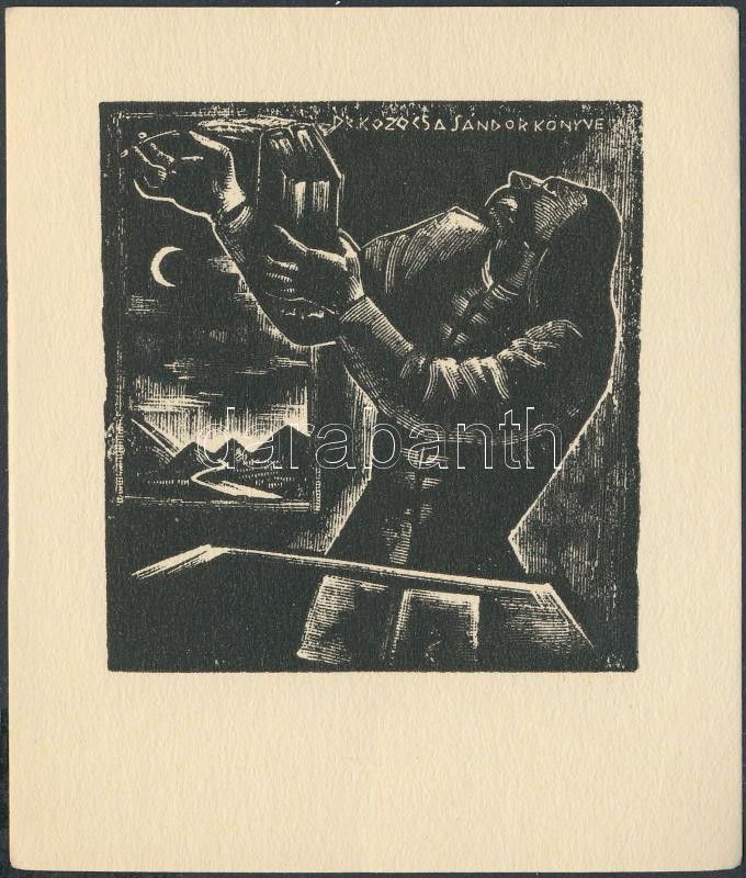 Leírás: Buday György (1907-1990): Dr. Kozocsa Sándor könyve, fametszet, papír, jelzett a dúcon, 6×5,5 cm