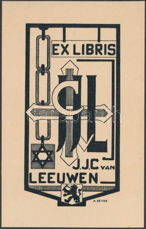 De Vos, A.: Ex libris J. J. C. von Leeuwen, judaika témájú ex libris, ... https://www.darabanth.com/hu/270-Gyorsarveres/270.0/Festmeny-mutargy-papirregiseg-egyeb/Ex-libris-es-kisgrafika~7/De-Vos-A-Ex-libris-J-J-C-von-Leeuwen-judaika-temaju-ex-libris-fametszet-papir-jelzett-~II1360404