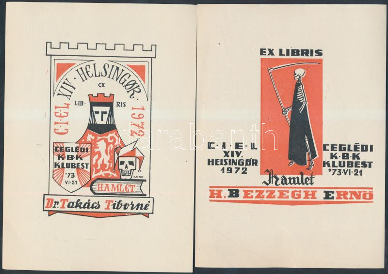 Leírás: Kaczur jelzéssel: ex libris, klisé, papír,az egyik dúcon jelzett,2db, 15x10cm