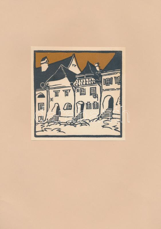 Kós Károly (1883-1977): Segesvári házak, színezett linómetszet, papír,... https://www.darabanth.com/hu/270-Gyorsarveres/270.0/Festmeny-mutargy-papirregiseg-egyeb/Ex-libris-es-kisgrafika~7/Kos-Karoly-1883-1977-Segesvari-hazak-szinezett-linometszet-papir-jelzes-nelkul-11-5~II1366508