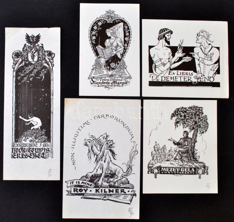 Leírás: Petry Béla (1902-1996) : Vegyes ex libris tétel, klisé, jelzettek, 5db, papír, különböző méretben, cca 12x10cm