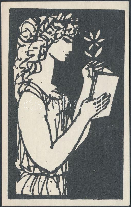 Leírás: Reich Károly (1922-1988): Olvasó lány, fametszet, papír, jelzés nélkül, 9,5×6 cm