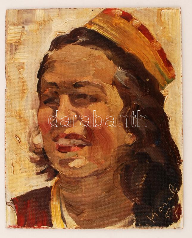 Kováts jelzéssel: Női arckép. Olaj, farost, 28x22 cm https://www.darabanth.com/hu/270-Gyorsarveres/270.0/Festmeny-mutargy-papirregiseg-egyeb/Festmenyek-es-grafikak~6/Kovats-jelzessel-Noi-arckep-Olaj-farost-28x22-cm~II1364162