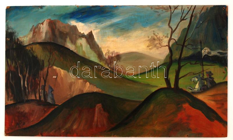 MCP jelzéssel: Táj lovassal. Olaj, falemez, 43×72 cm https://www.darabanth.com/hu/270-Gyorsarveres/270.0/Festmeny-mutargy-papirregiseg-egyeb/Festmenyek-es-grafikak~6/MCP-jelzessel-Taj-lovassal-Olaj-falemez-43C39772-cm~II1365439