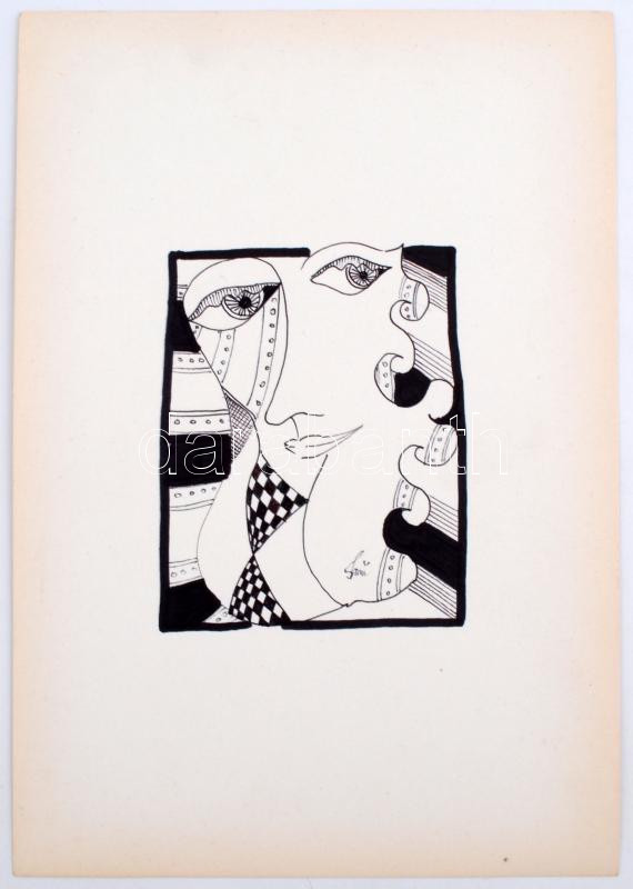 Leírás: Szász jelzéssel: Női arc. Tus, papír, 13×10 cm