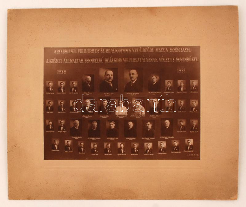 1931 Kassai magyar tannyelvű gimnázium kistablója, 42 nevesített portr... https://www.darabanth.com/hu/270-Gyorsarveres/270.0/Festmeny-mutargy-papirregiseg-egyeb/Foto~32/1931-Kassai-magyar-tannyelvu-gimnazium-kistabloja-42-nevesitett-portreval-21x29-5-cm-karton-~II1360929