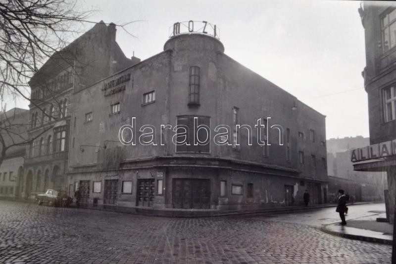 1973 Budapest, József Attila mozi, külső felvételek az épületről, 2 db szabadon felhasználható, jogdíjmentes negatív, 6x7 cm + 2 db modern nagyítás ezekről