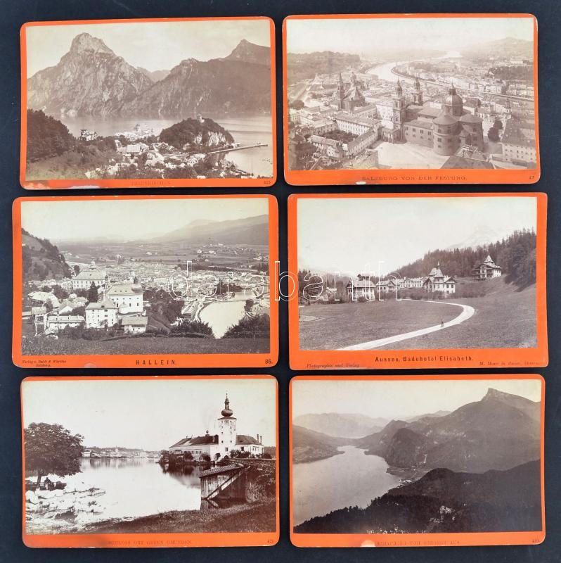 cca 1870-1880 Ausztria 28 db keményhátú fotó különböző városok képeivel Insbrucktól - Halstattig / cca 1870-1880 Austria Collection of 28 town view photos. Different cities from Salzburg, to Halstatt, Traunkirchen, Ausse. 17x11 cm