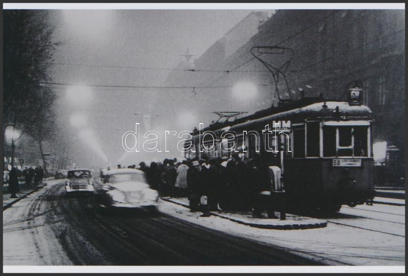 Leírás: cca 1950 Budapest, a 68-as villamos megállója, ismeretlen képi forrás modern másolata, 10x15 cm