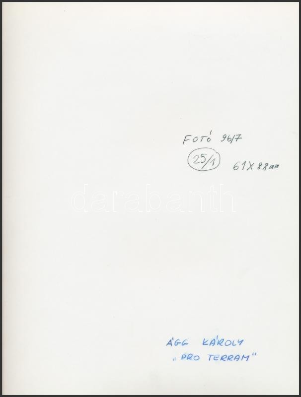 cca 1995 Ágg Károly: Pro terram, feliratozott vintage fotóművészeti al... https://www.darabanth.com/hu/270-Gyorsarveres/270.0/Festmeny-mutargy-papirregiseg-egyeb/Foto~32/cca-1995-Agg-Karoly-Pro-terram-feliratozott-vintage-fotomuveszeti-alkotas-22-5x16-5-cm~II1359955