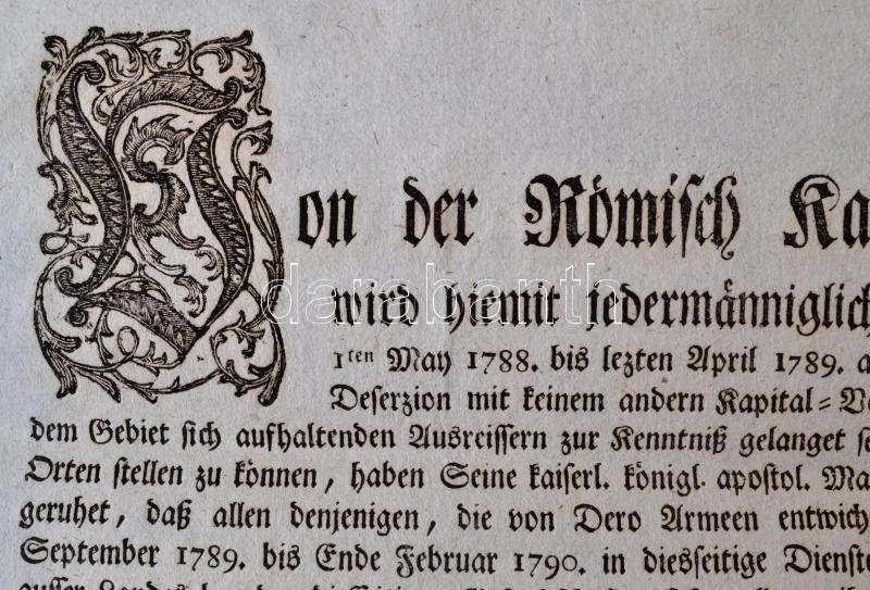 Leírás: 1789 Michael Wallis gróf által kiadott katonai amnesztia / General-pardon for soldiers 48x38 cm