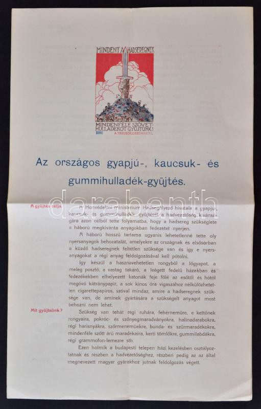 1916 Országos gyapjú-, kaucsuk-, és gummihulladék gyűjtés, hadsegély. ... https://www.darabanth.com/hu/270-Gyorsarveres/270.0/Festmeny-mutargy-papirregiseg-egyeb/Militaria~2/1916-Orszagos-gyapju--kaucsuk--es-gummihulladek-gyujtes-hadsegely-Nyomtatvany-4p~II1361626