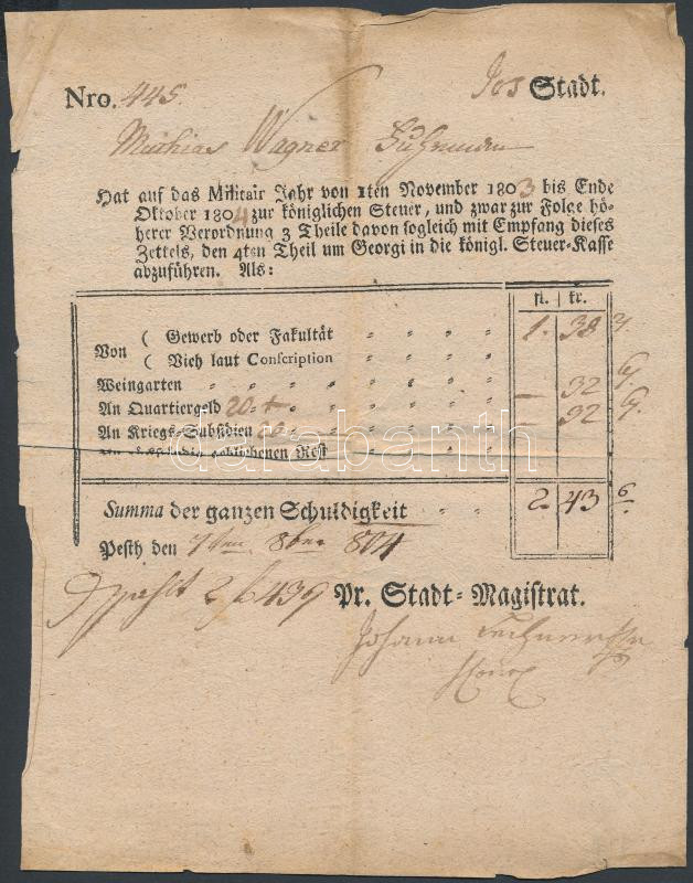 Elszámolás az 1803-1804 -es katonai év királyi adójához való hozzájár... https://www.darabanth.com/hu/270-Gyorsarveres/270.0/Festmeny-mutargy-papirregiseg-egyeb/Militaria~2/Elszamolas-az-1803-1804-es-katonai-ev-kiralyi-adojahoz-valo-hozzajarulasrol-22x17cm~II1359894