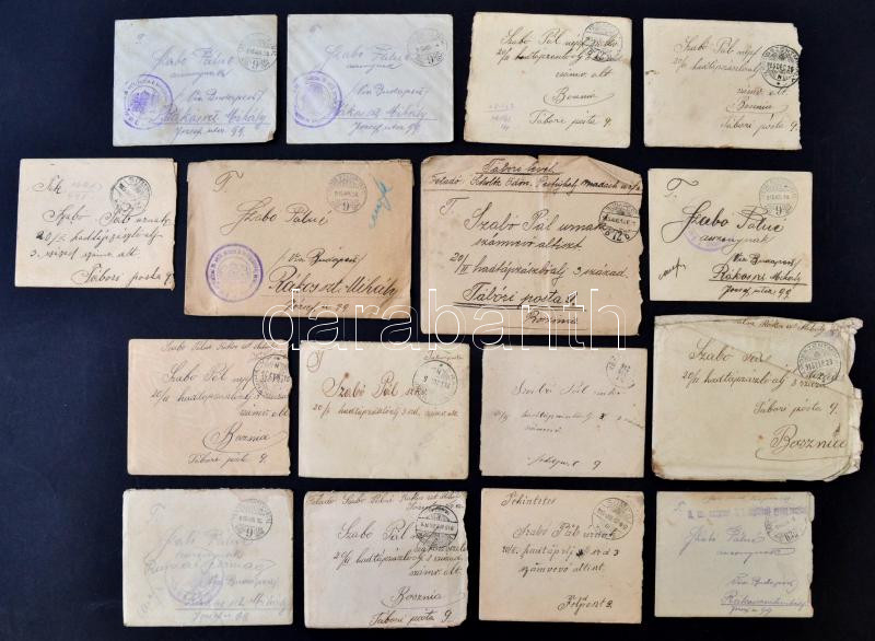 Leírás: cca 1915-1918 Hadtápzászlóaljhoz beosztott számvevő altiszt családjának küldött levelei (borítékkal együtt), összesen 17 db