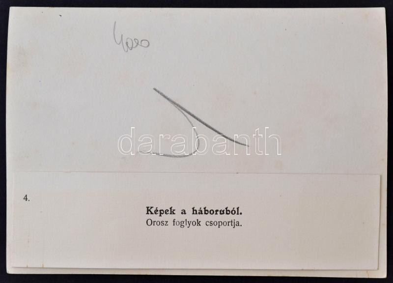 cca 1915 Orosz foglyok csoportja. Képek a háborúból. Fotó verzón felir... https://www.darabanth.com/hu/270-Gyorsarveres/270.0/Festmeny-mutargy-papirregiseg-egyeb/Militaria~2/cca-1915-Orosz-foglyok-csoportja-Kepek-a-haborubol-Foto-verzon-feliratozva-11x16cm~II1365141