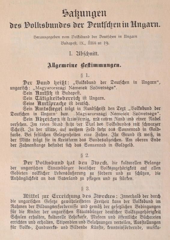 1939 Satzungen des Volksbundes der Deutschen in Ungarn. Budapest. / A ... https://www.darabanth.com/hu/270-Gyorsarveres/270.0/Festmeny-mutargy-papirregiseg-egyeb/Nyomtatvanyok~4/1939-Satzungen-des-Volksbundes-der-Deutschen-in-Ungarn-Budapest-A-Magyarorszagi-Nemetek-Szove~II1361619