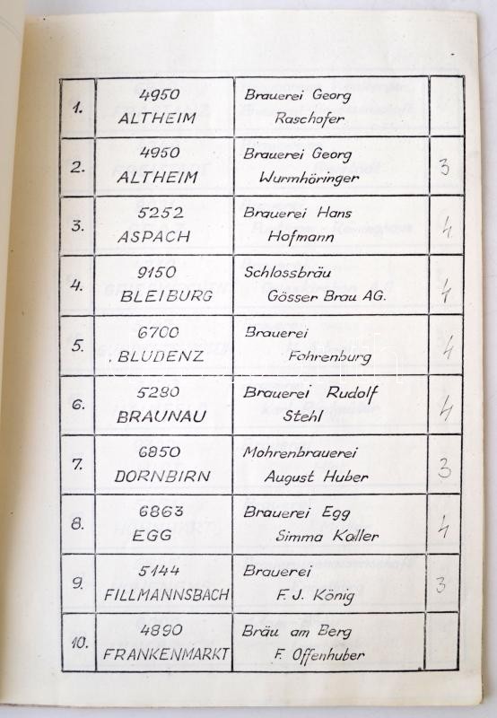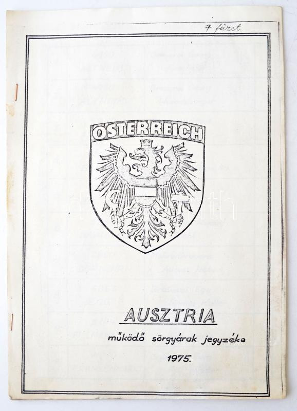 1975 Ausztria működő sörgyárak jegyzéke. 13 oldal gépirat https://www.darabanth.com/hu/270-Gyorsarveres/270.0/Festmeny-mutargy-papirregiseg-egyeb/Nyomtatvanyok~4/1975-Ausztria-mukodo-sorgyarak-jegyzeke-13-oldal-gepirat~II1335438
