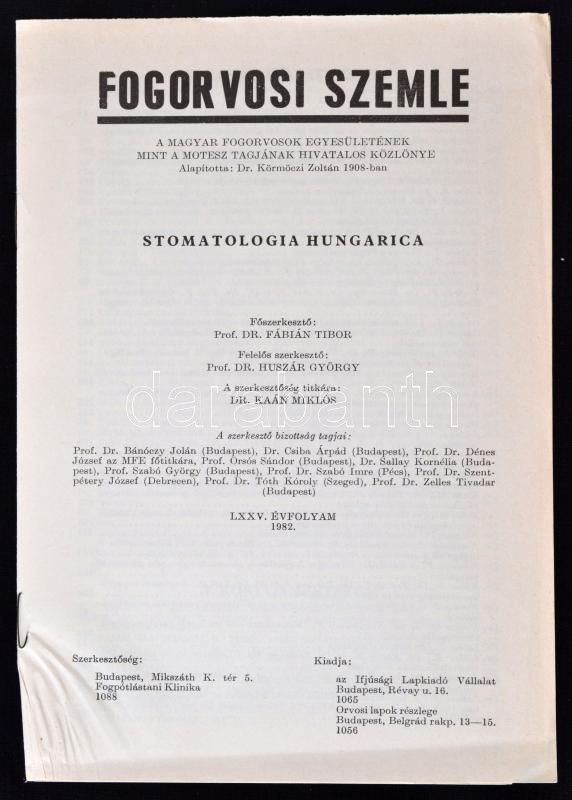 Fábián Tibor(szerk.): Fogorvosi szemle - Stomatologia Hungarica. LXXV.... https://www.darabanth.com/hu/270-Gyorsarveres/270.0/Festmeny-mutargy-papirregiseg-egyeb/Nyomtatvanyok~4/Fabian-Tiborszerk-Fogorvosi-szemle--Stomatologia-Hungarica-LXXV-evfolyam-19821-12-januC3~II1362164