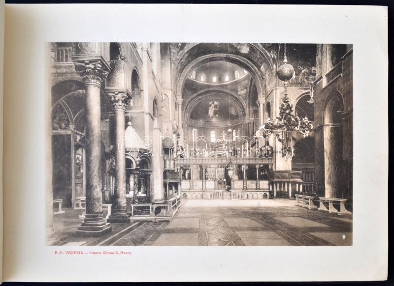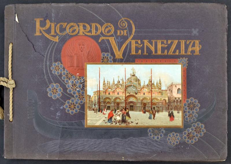 Leírás: cca 1900 Ricordo di Venezia, nagyméretű, album szakadt szecessziós borítóval, 22x32cm