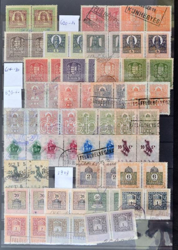 Leírás: Háború előtti magyar okmánybélyeg tétel összefüggő párokban berakólapon (17.600)