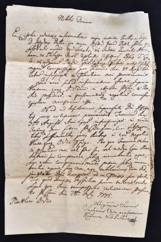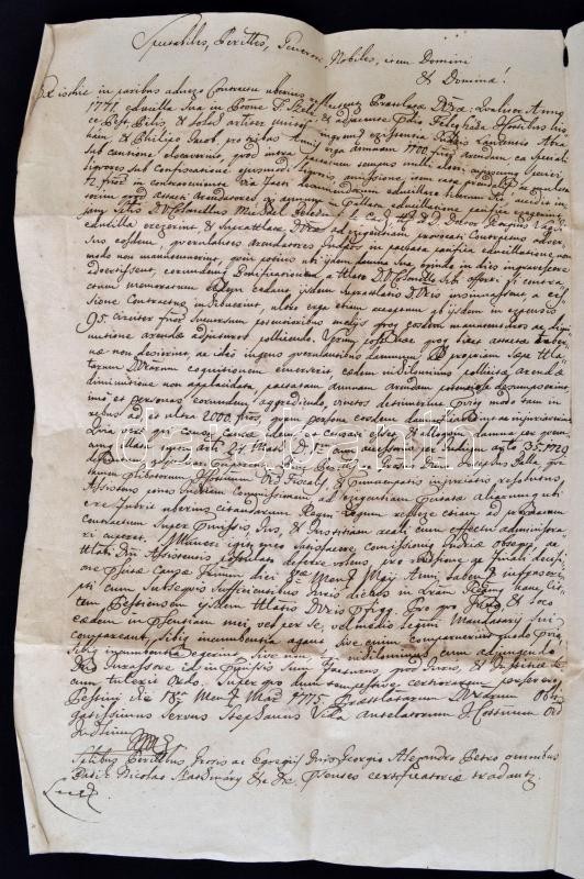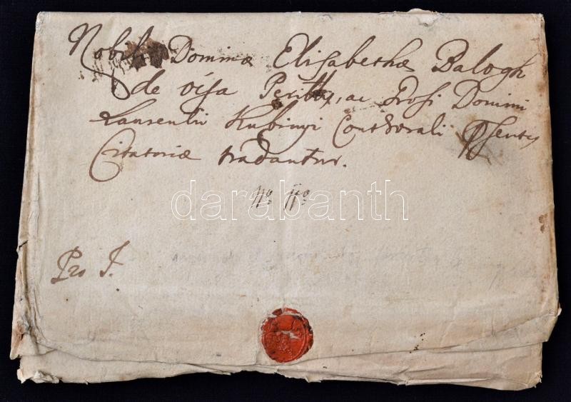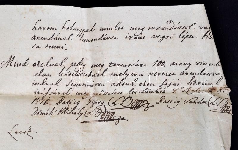1775 Tápiószelei illetve félegyházi kocsmáltatási (kocsma fenntartását engedélyező) szerződések, Pest vármegye másolatában, magyar illetve latin nyelven, Kubinyi Lőrinc (1740-1777)(?) és felesége Balog Erzsébet részére megküldve, a külzeten töredékes rányomott viaszpecséttel