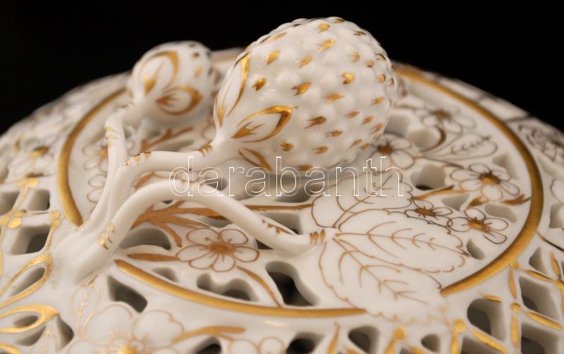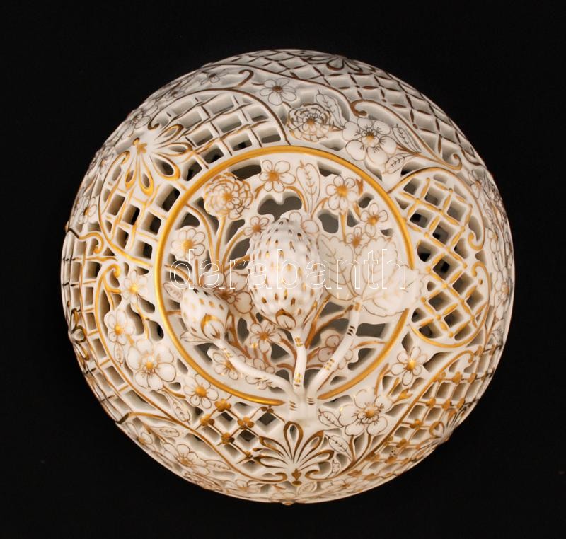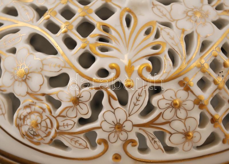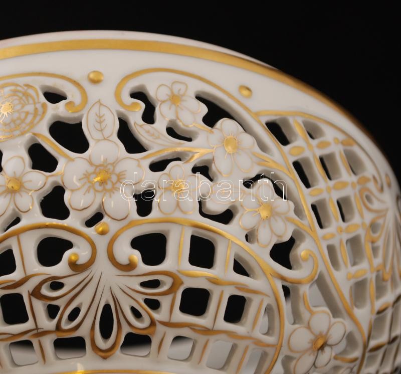 Leírás: Herendi áttört bonbonier, kézzel festett, jelzett, hibátlan, m:14 cm, d:14 cm