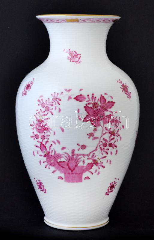 Herendi indiai kosár mintás váza, porcelán, kézzel festett, jelzett, h... https://www.darabanth.com/hu/270-Gyorsarveres/270.0/Festmeny-mutargy-papirregiseg-egyeb/Porcelan~14/Herendi-indiai-kosar-mintas-vaza-porcelan-kezzel-festett-jelzett-hibatlan-33x12cm~II1338259