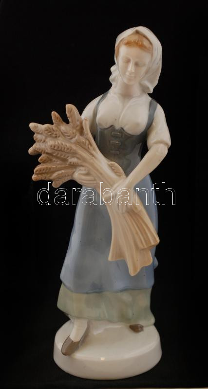 Leírás: Kalászos nő, Gräfenthal német figurális porcelán, kézzel festett, jelzett, apró kopásnyomokkal, m: 23,5 cm