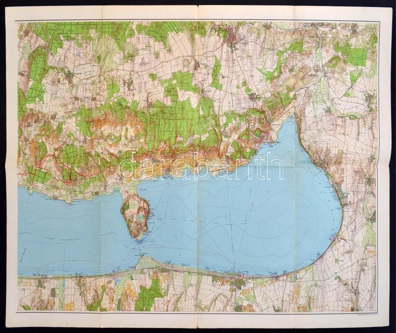 Leírás: 1939 Balaton térkép 2db egymással érintkező térkép, 1:50,000, hajtogatva, jó állapotban, 63x88cm