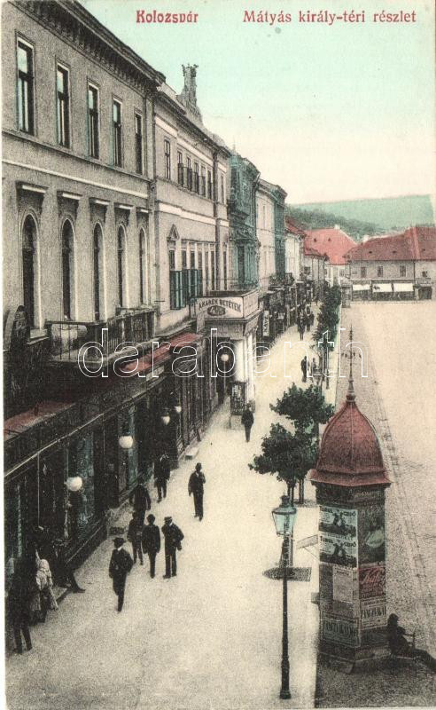 Leírás: Kolozsvár, Cluj; Mátyás király tér, Takarék Betétek, Kávéház / square, savings bank, cafe