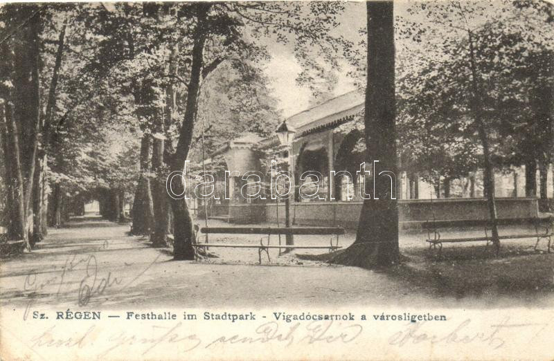 Leírás: Szászrégen, Sächsisch-Regen; Vigadócsarnok a városligetben, Ignatz Hübner / hall, city park (EB)