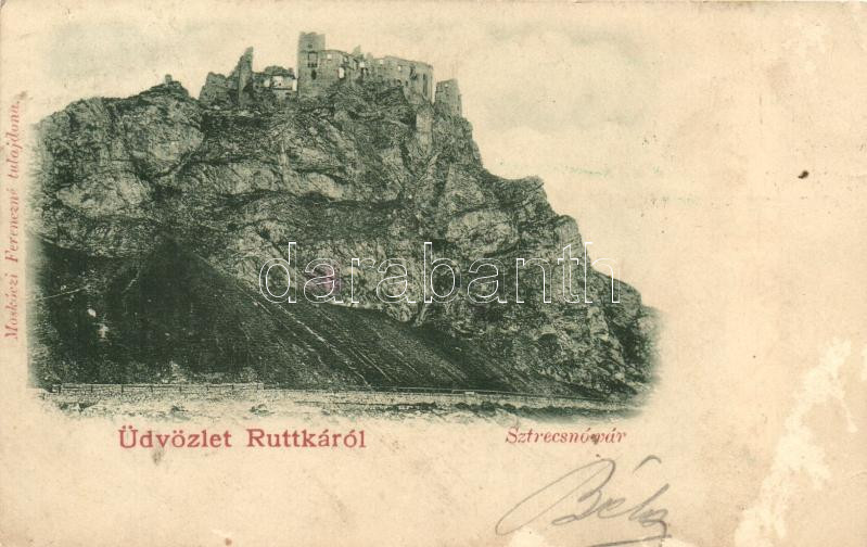 Leírás: 1899 Sztrecsnó, Sztrecsény, Strecno; várrom / castle ruin (felületi sérülés / slight surface damage)