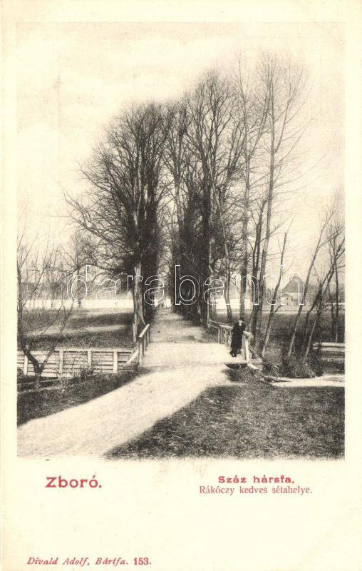 Zboró, Száz hársfa, II. Rákóczi Ferenc kedvenc sétahelye, kiadja Dival... https://www.darabanth.com/hu/270-Gyorsarveres/270.0/Kepeslapok/Felvidek~300016/Zboro-Szaz-harsfa-II-Rakoczi-Ferenc-kedvenc-setahelye-kiadja-Divald-Adolf-linden-promen~II1365953