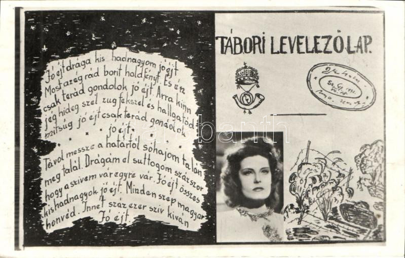 Leírás: II. világháborús romantikus magyar képeslap Karády Katalin képpel / WWII Hungarian army, military romantic postcard (EK)