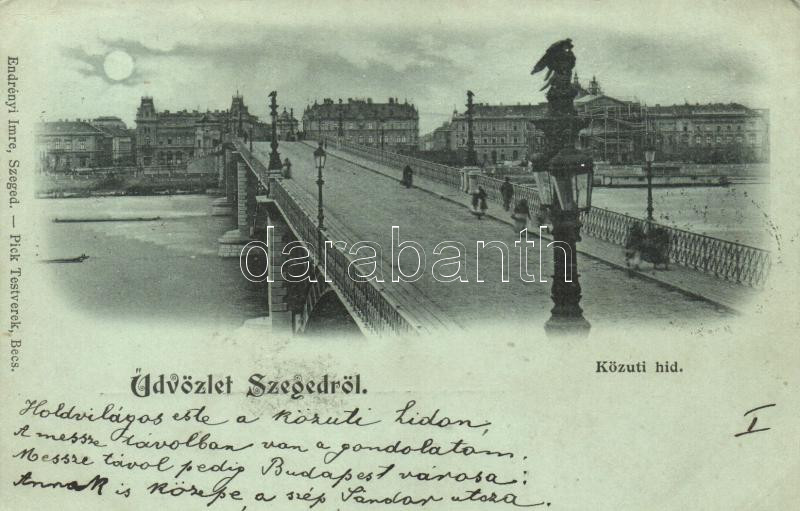 1899 Szeged, Közúti híd, kiadja Endrényi Imre (EK) https://www.darabanth.com/hu/270-Gyorsarveres/270.0/Kepeslapok/Magyarorszag~300013/1899-Szeged-Kozuti-hid-kiadja-Endrenyi-Imre-EK~II1363974