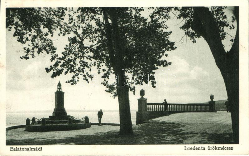 Balatonalmádi, irredenta örökmécses, kiadja Kálmán István https://www.darabanth.com/hu/270-Gyorsarveres/270.0/Kepeslapok/Magyarorszag~300013/Balatonalmadi-irredenta-orokmecses-kiadja-Kalman-Istvan~II1360135