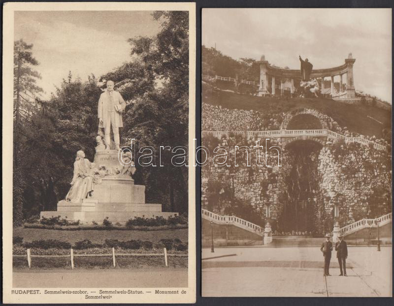 Leírás: Budapest, Gellért és Semmelweis szobor - 2 db régi képeslap